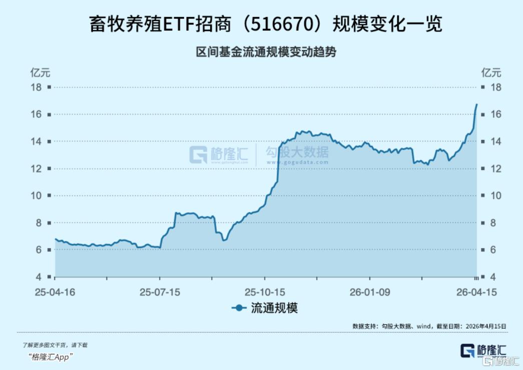 与此同时,截至4月15日,畜牧养殖ETF招商(516670)连续5个交易日内获资金连续净流入合计1.8亿元,年初至今份额增长4.38亿份,位居养殖类ETF第一。