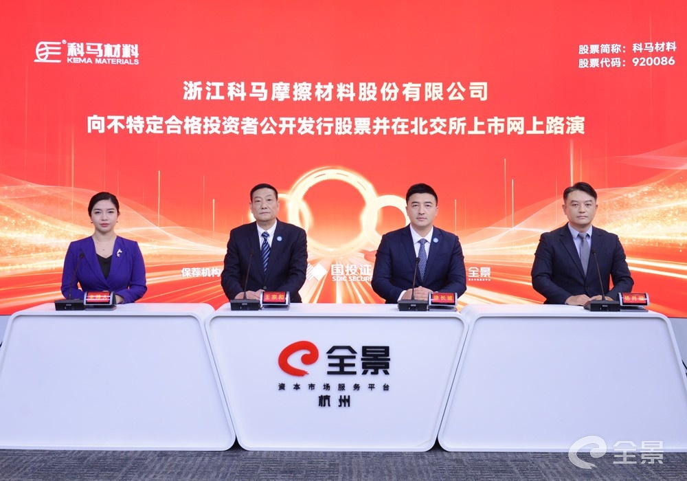 浙江科马摩擦材料股份有限公司向不特定合格投资者公开发行股票并在北交所上市网上路演于2026年1月5日(星期一)14:00-16:00在全景路演成功举行。