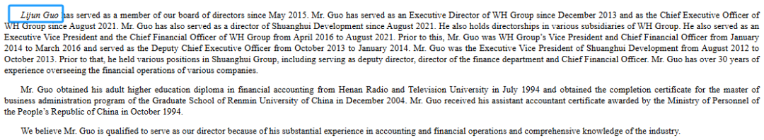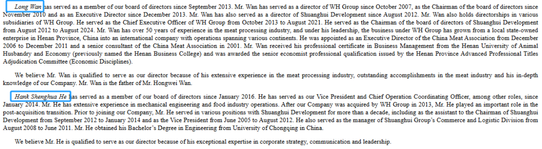 招股书显示,史密斯菲尔德食品的管理层如下: