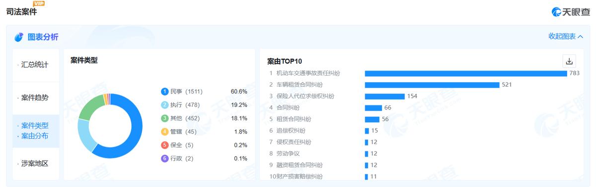 另据天眼查APP信息,截至目前,一嗨租车共涉及2079件起司法案件,其中59.07%的案件身份为被告,主要案由为机动车交通事故责任纠纷、车辆租赁合同纠纷、保险人代位求偿权纠纷等,屡屡与用户对簿公堂。