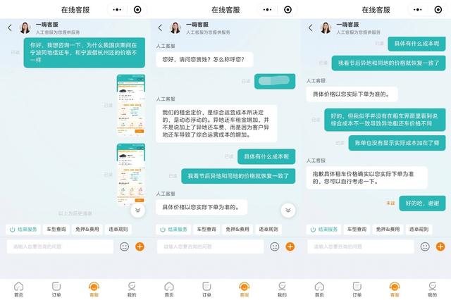 针对上述情况,笔者尝试联系了一嗨租车官方客服,被告知其租金定价是综合运营成本所决定的,浮动是正常现象。异地还车租金增加,并不是说加上了异地还车费,而是因为客户异地还车导致综合运营成本的增加。