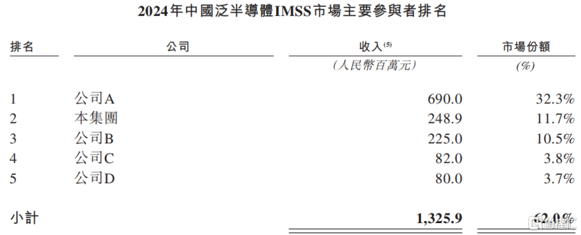 2024年中国泛半导体IMSS市场主要参与者排名,来源:招股书