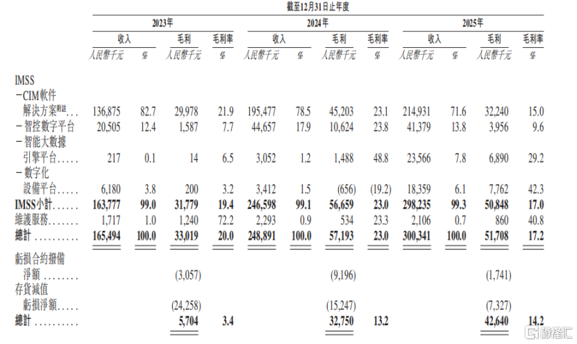 其中,IMSS业务项下的CIM软件解决方案是主要收入来源。各报告期,这部分收入分别占总收入的82.7%、78.5%及71.6%。