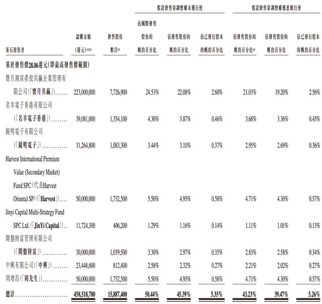本次上市,美格智能引入了8名基石投资者,合共认购该公司约4.59亿港元的发售股份。其中,基石投资者包括宝月共赢、名幸电子香港锐明技术(锐明电子)、嘉实基金(Harvest )、JinYi Capital、开盘财富等。