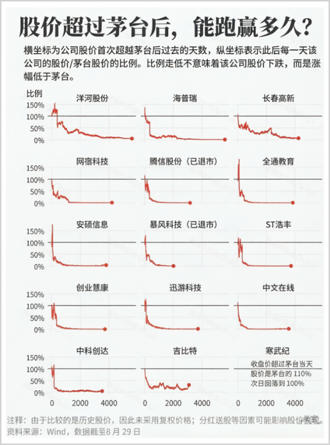 2015年后,“茅台魔咒” 被市场总结出来——每一个股价超过茅台的公司都会遭受厄运。那么,源杰科技作为新挑战者,能否打破这一“魔咒”?