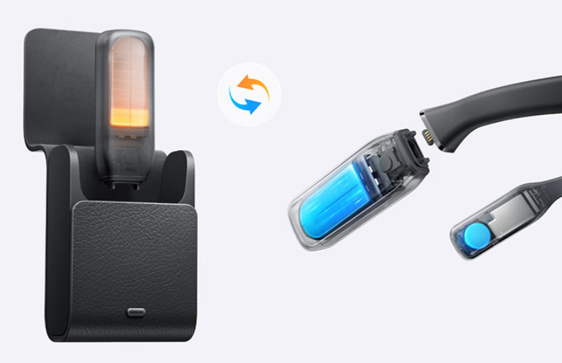 功能上,用户戴上夸克S1后可进行第一人称超清拍摄、千问AI对话等,其图像识别、导航、翻译(89种语言)、支付、提词、备忘等功能均支持近眼显示。续航上,它采用镜腿热插拔换电设计,配合双电池架构和随身换电仓,可以做到随时换电,实现“换电不断电”的不间断续航可能。