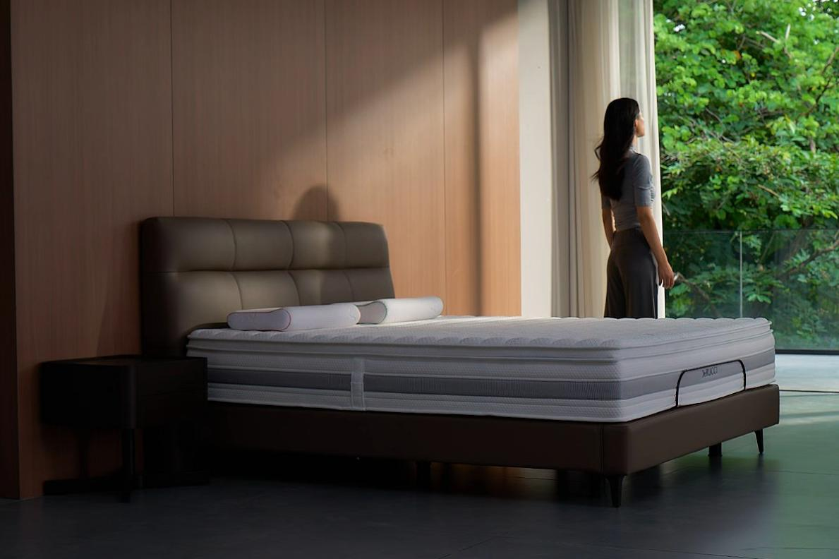 慕思智能床Pro还针对特定睡眠场景进行了贴心优化。如通过高敏感度传感器智能识别到鼾声后,以1度/秒微动抬升床头的方式主动干预,帮助用户顺畅呼吸,并减少对伴侣的干扰,当打鼾声停止后,床会自动放平。在起床场景中,它基于用户设定的起床时间,分三段渐进式抬起唤醒用户,让用户不再被闹钟“粗暴”叫醒。另外,慕思智能床Pro拓展出观影、阅读、瑜伽、减压等多种智能模式,让床化身成“可坐可躺可卧”的百变家具。