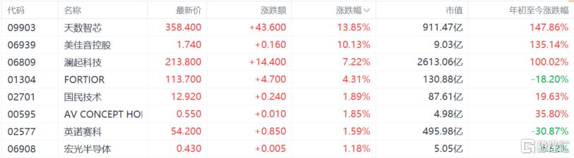 港股天数智芯大涨超13%,刷新上市新高,月内累计升幅超70%;澜起科技涨超7%。
