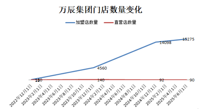 高速增长源于拓店驱动。据公司此前递交的招股书显示,截至2025年6月底,万辰集团的门店数增至15365家,包括14334家“好想来”和1031家“老婆大人”。两个品牌加盟店占比共达到99.4%。