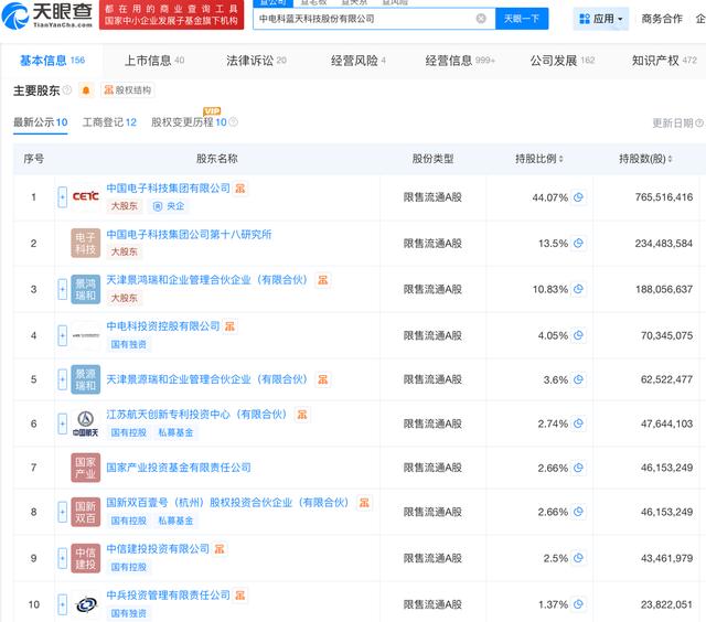 天眼查App信息显示,电科蓝天成立于1992年10月,位于天津市,前称包括天津蓝天电源有限责任公司、中电力神有限公司、中电科能源有限公司等。目前,该公司的注册资本约为15.63亿元,法定代表人为郑宏宇,主要股东包括中国电科等。