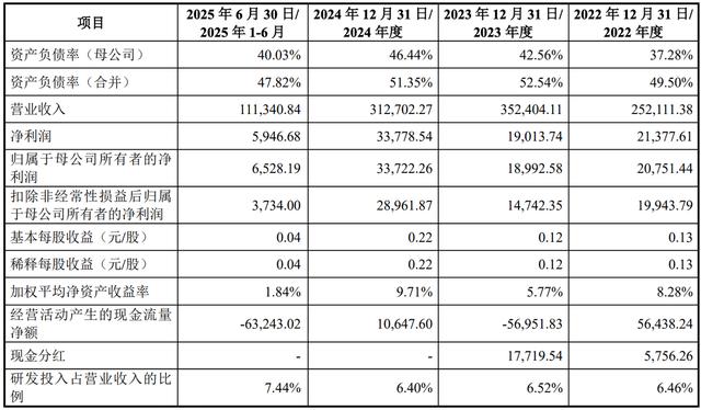 2022年、2023年、2024年度和2025年上半年,电科蓝天的营收分别约为25.21亿元、35.24亿元、31.27亿元和11.13亿元,净利润分别约2.15亿元、1.90亿元、3.39亿元和5946.68万元,扣非后净利润分别约2.01亿元、1.47亿元、2.90亿元和3734.0万元。