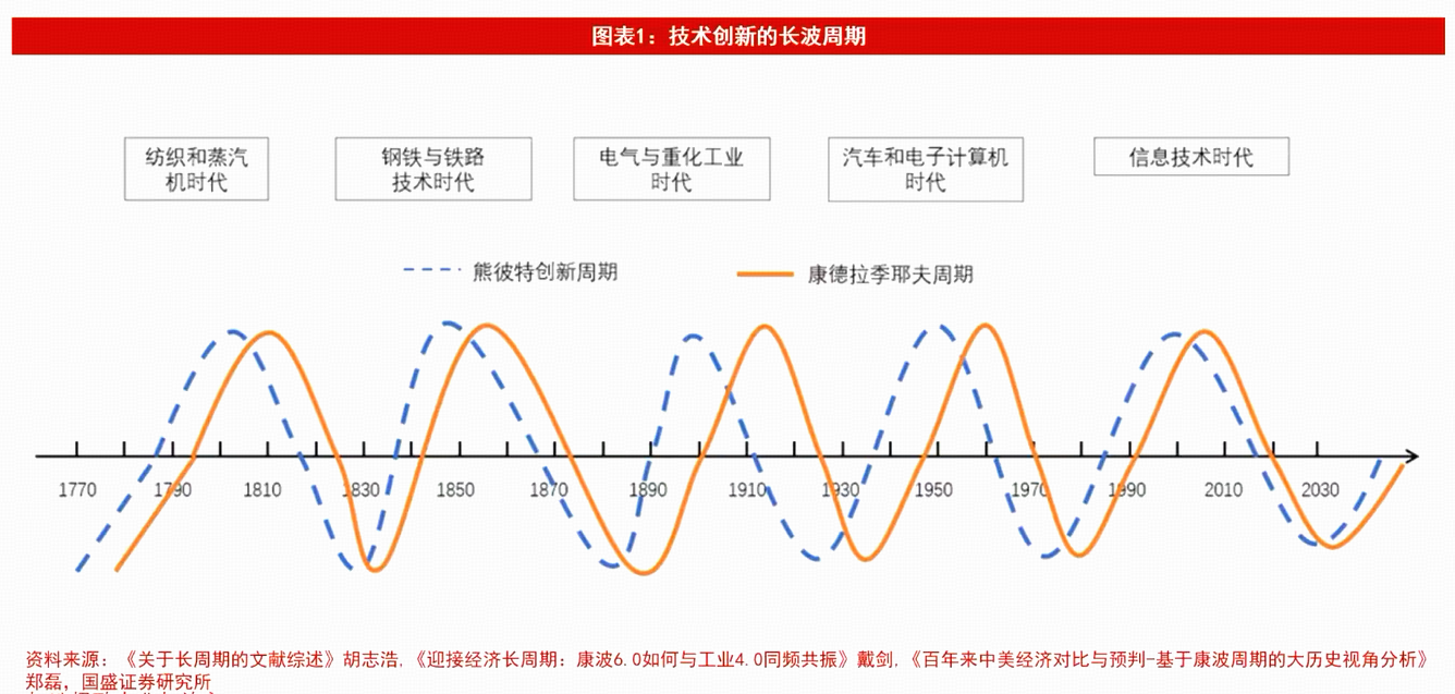 ①“回升期”:指的是新的一轮工业革命在主导国的工业应用,例如1982年IBM首台个人电脑问世,开启本轮康波周期“技术信息时代”的回升期;