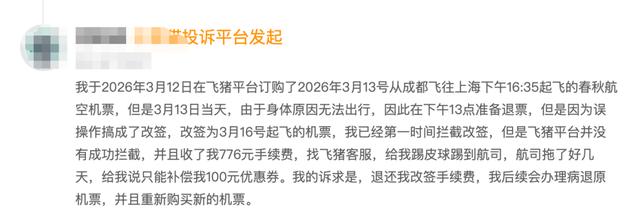 还有用户拦截改签,平台拦截不成功。用户投诉后,就踢起了皮球,再投诉就100元优惠券打发。