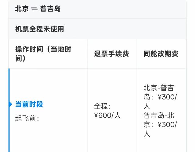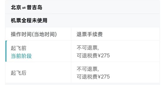 我在航司官网也查了下,这趟航班由中国国航执飞。国航的规定是北京前往普吉岛不可退票,但普吉岛回北京是可以退票的,只收取600元的自愿退票手续费。