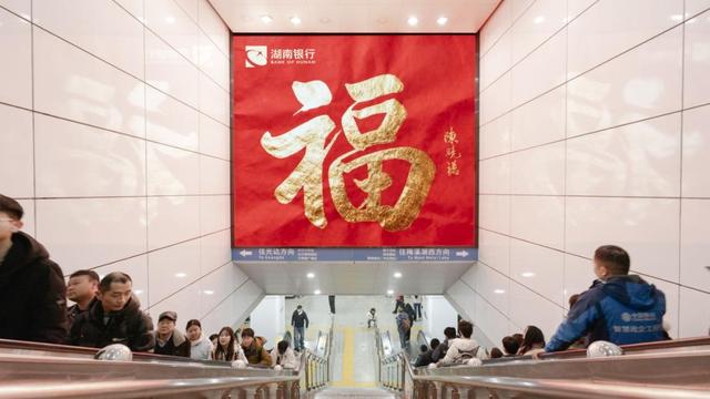 值得注意的是,今年湖南银行在传播视角上更加聚焦“湖湘面孔”。除了传统名家,外卖员李向阳、中学生陈晓诺、主持人伊一等来自各行各业的湖南人也参与到“全民共书”活动,并将他们的作品送上地铁屏蔽门、LED大屏,成为春节里最贴近人心的风景。