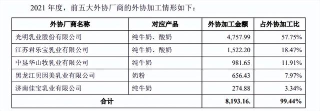 此外,认养一头牛的奶源并非全部都是“自有奶源”。招股书显示,光明乳业、君乐宝、中垦华山、贝因美、佳宝乳业等厂商均为其代加工厂。这也意味着,认养一头牛的部分产品为贴牌牛奶,独立生产能力还有待加强。