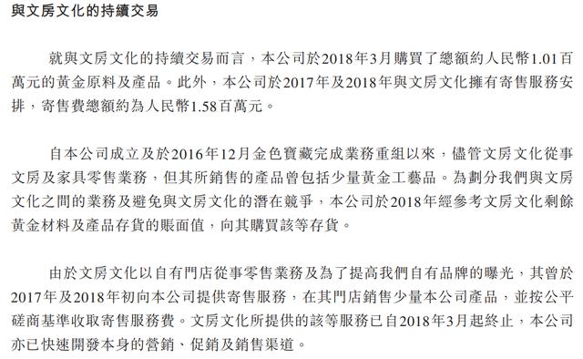 同时,老铺黄金方面综合判断非黄金业务涉及黄金珠宝大行业,不排除对老铺黄金业务有构成潜在同业竞争的可能性,所以为避免潜在同业竞争,金色宝藏逐步减少其业务量并最终终止经营,二者不存在业务相似或同业竞争。