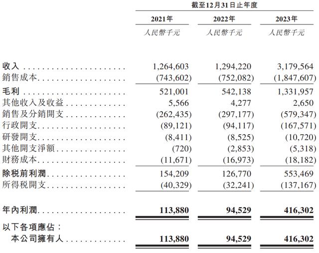 报告期同期,老铺黄金的净利润分别为1.14亿元、9452.9万元和4.16亿元。其中,2023年的净利润增速高达340.4%,该公司在招股书中称,利润的增长得益于疫情影响的渐退,同时与该公司的业务扩张一致。三、毛利水平显著,供应链条单一