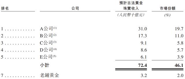 聚焦古法黄金珠宝赛道,老铺黄金的市场占有率也并不显著。弗若斯特沙利文资料显示,2023年中国古法黄金珠宝的市场规模为1573亿元,按古法黄金珠宝销售收入计,老铺黄金的市场份额仅为2%,在古法黄金珠宝市场中排名第7。