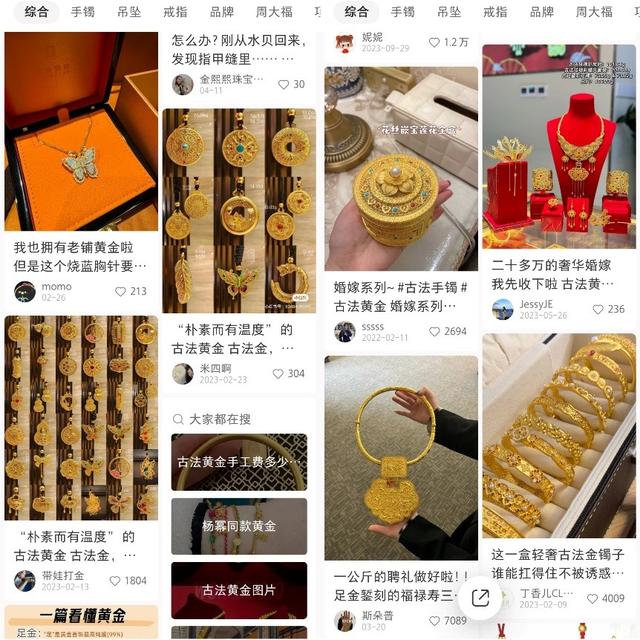 所谓“古法黄金”,即将现代设计与中国古典文化相结合,具有哑光、磨砂或其他古代宫廷金饰特质,并应用至少两种及以上中国传统手工黄金制造工艺的纯金珠宝。近年来“国潮风”的盛行,使得古法黄金成为年轻人所青睐的产品。
