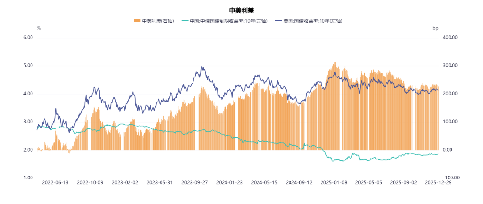 当前中美利差在225bp附近,理论上人民币仍有较大升值空间。按照相关研究,中美10年期国债利差每收窄10个基点,外资流入债市规模平均增加约50亿元。简单假设,如果2026年底中美利差收敛于0,则为国内债市带来千亿级增量资金。