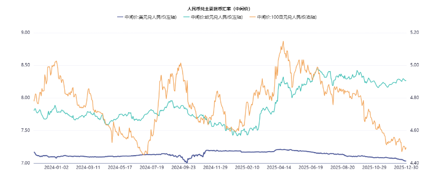 截止12月30日18:00,人民币在岸汇率USDCNY6.9874,人民币离岸汇率USDCNYCNH6.9818。人民币兑美元汇率突破7这一关键整数关口,创下2024年10月以来的新高,引发资本市场广泛关注。此次汇率破7的背后是多种因素共同驱动,包括外部美联储降息周期带动美元指数走弱,内部是国内经济基本面韧性、贸易顺差高增及年末企业集中结汇支撑等。汇率作为连接内外市场的核心变量,其变动将通过货币政策空间、资金流动、盈利预期等多个路径传导,对A股和债市产生一定影响。本文主要分析人民币汇率升值对股市和债市的影响,并给出相应的市场展望与投资启示。