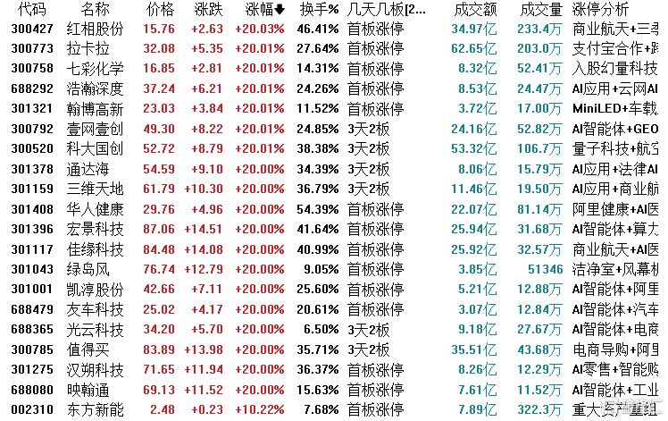 红相股份:今日涨停,偏离值46.41%,换手率46.41%,成交额34.97亿。龙虎榜数据显示,机构净买入1.13亿元,成都系净买入1.05亿元。