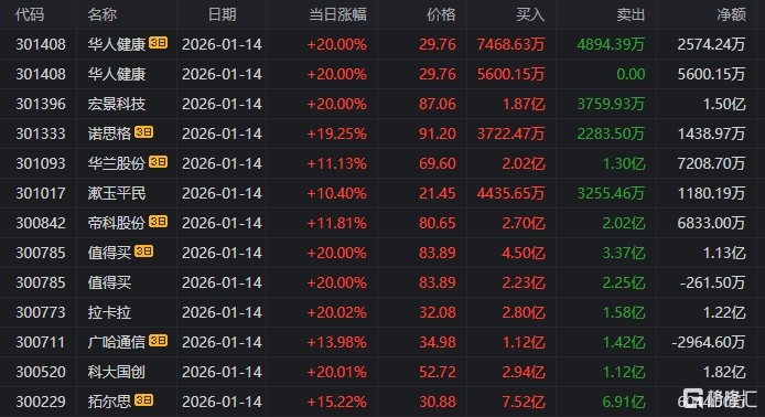 中山东路:净买入拉卡拉2.08亿元、宏景科技9726万元、值得买7157万元,净卖出引力传媒1.76亿元
