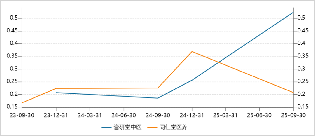 依托这套看似无懈可击的经营模式,誉研堂近年业绩增长势头迅猛。2023年至2025年前三季度,公司总营收从1.5亿元上升至2.84亿元,净利润从2000多万元增至5200多万元。而背靠百年老字号的同仁堂医养,同期营收反而下滑两成以上至8.6亿元,净利润仍徘徊在2000多万元。