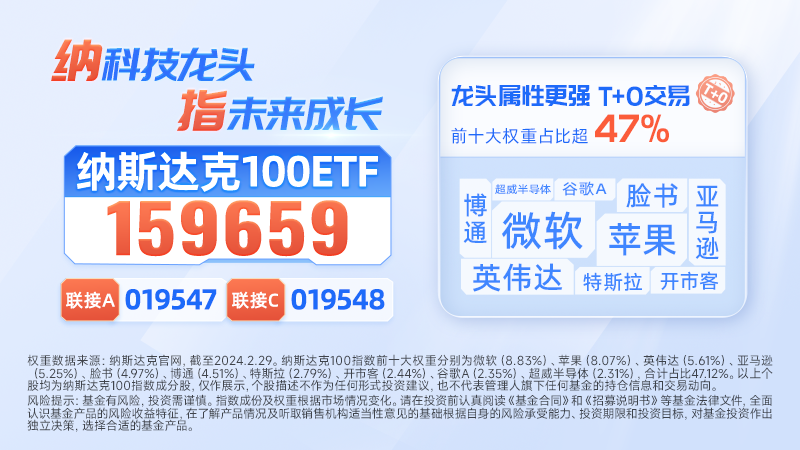综合来看,纳斯达克100ETF(159659)不失为布局大型科技股的便捷工具,场外用户可通过联接基金(A类019547;C类019548)进行定投、申购。