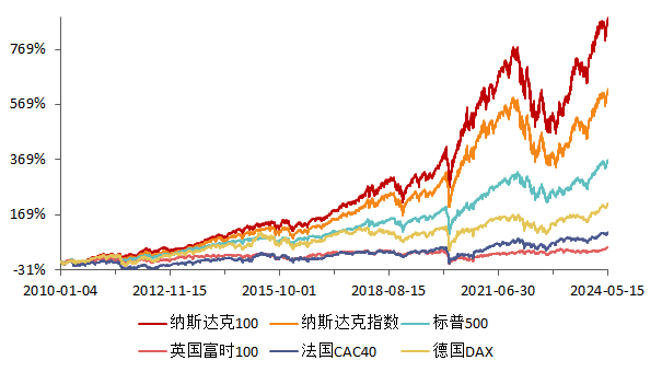 来源:Wind,统计区间2010.1.1-2024.5.17。纳斯达克100指数发布于1985年2月1日,指数过往业绩不代表未来表现。