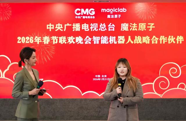 1月23日,中央广播电视总台与魔法原子携手官宣:魔法原子正式成为中央广播电视总台2026年春节联欢晚会智能机器人战略合作伙伴。