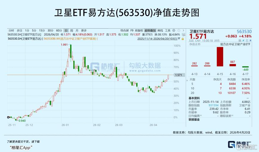 聚焦赛道龙头公司的卫星ETF易方达(563530)今日涨4.18%,近9个交易日涨超18%