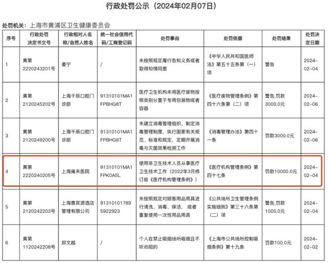 无独有偶,2023年8月份,杭州雍禾发之初医疗美容诊所也因为让护士从事医学检验工作,被杭州市拱墅区卫健局处罚。