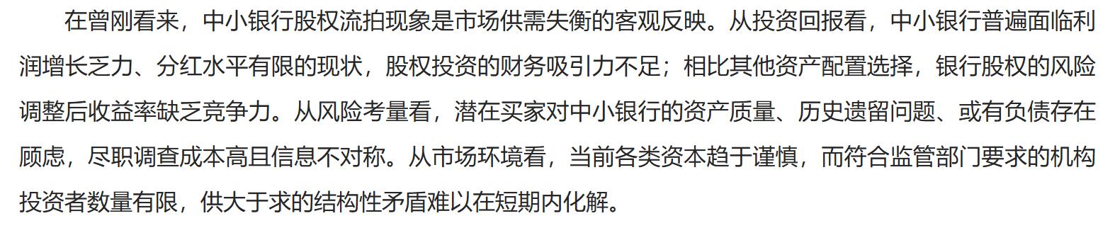 区域中小银行的股权困境并非孤例,股权流拍现象是市场供需失衡的客观反映。