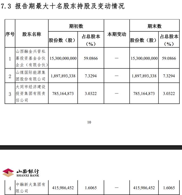 2021年4月,随着晋城银行等五家银行合并重组为山西银行,中融新大转为山西银行第四大股东。
