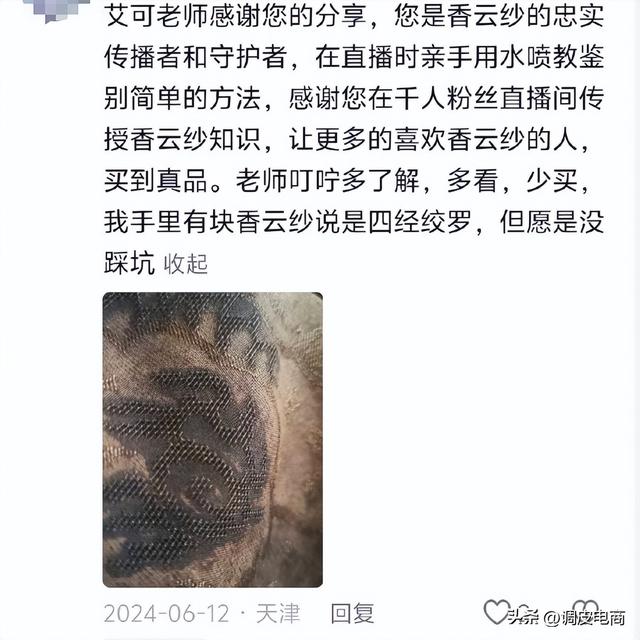 也正因这份执拗,2021 年入驻抖音电商时,艾可从没想过要做 「网红店」,只一心想把非遗的故事讲给更多人听。短视频里,没有精致布景,只有晾晒的布匹在阳光下泛着光;只有老匠人戴着粗布手套,将河泥细细抹在绸面上。评论区总有人追着问「老师,帮我看看这料子对不对」「穿脏了用什么洗才不脱色」,他都一条条耐心回复。