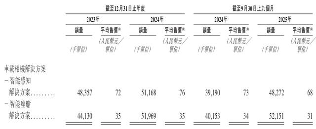 在市场竞争加剧的情况下,舜宇智行采取了更具竞争力的定价方案,将智能感知解决方案的平均售价由2024年前三季度的73元/单位降至2025年同期的68元/单位,智能座舱解决方案的平均售价也由34元/单位降至31元/单位。