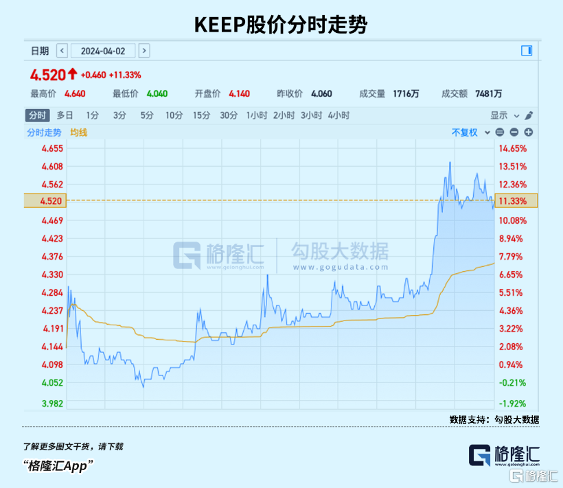 4月2日,Keep股价涨幅达到11.33%,一扫过往颓势,直接原因是资本市场对这份最新财报的认可,具体一点,Keep用数据打破了市场过去对其盈利能力的质疑。