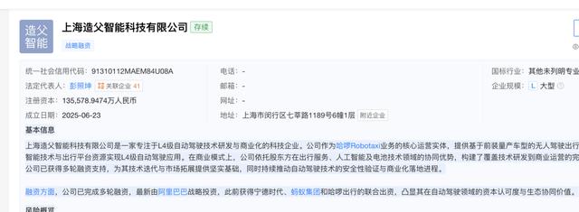 根据天眼查App显示,去年哈啰联手阿里、宁德时代进军Robotaxi,合资成立造父智能有限公司,计划今年量产,明年部署5万辆。