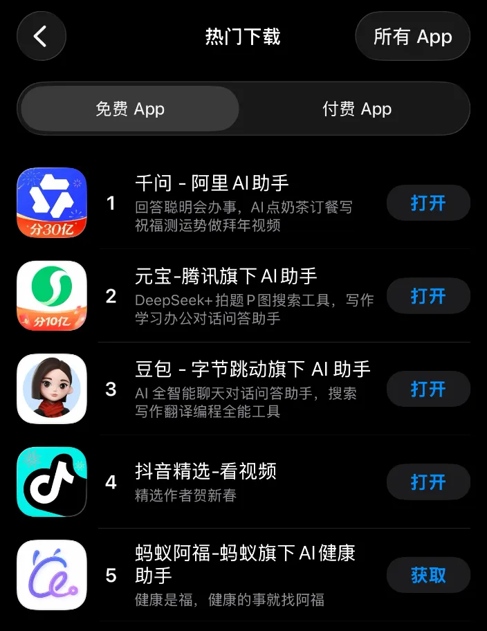 凭借此次活动,“元宝”APP下载量与用户活跃度激增,迅速攀升至苹果商店排行榜首位,一度超越长期占据榜首的“豆包”。在腾讯2026年员工大会上,马化腾表示,希望此次红包活动能够重现11年前的微信红包的时刻。