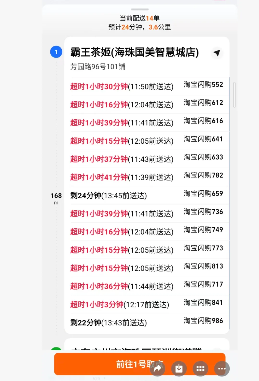 更有外卖骑手向蓝鲸记者展示了一张某茶饮店的外卖后台截图,画面显示该店订单已严重积压,十余个待配送订单中,超半数已超时一小时以上。