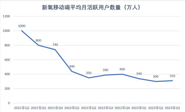 但需要指出的是,从C端获取佣金的新氧预定服务收入由2022年第三季度的2973.3万元降至2023年同期的2414.0万元,降幅为18.8%。此外,新氧报告期末的平均移动月活跃用户数(MAU)为310万人,较2022年同期下降20.5%。