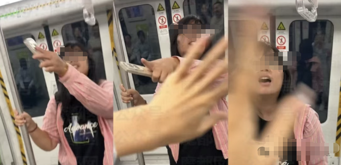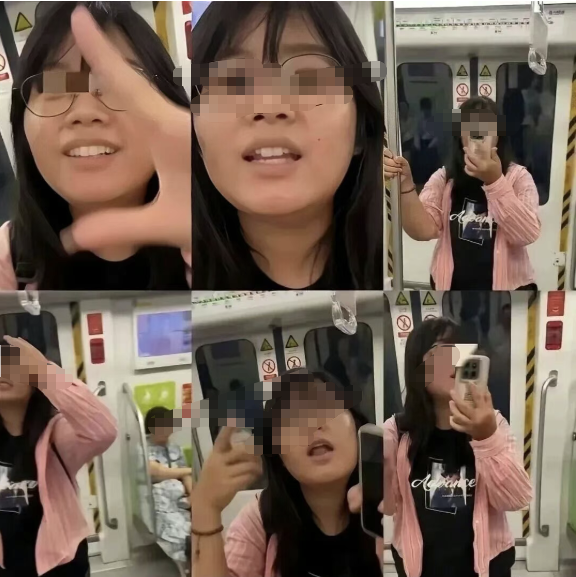 “粉衣姐”:(打电话)我觉得这一家没素质,然后他们在骂我,他们说路过鸡鸣寺的时候就算暗讽我,我的诉求的话就是到地铁站的时候我让他们也下车,然后……