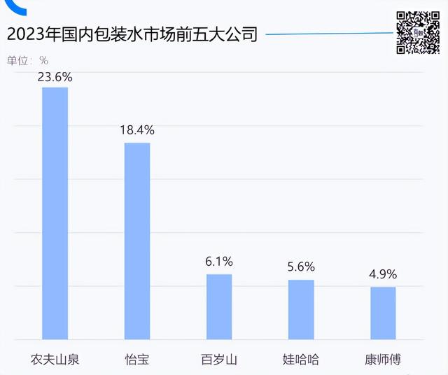 2023年农夫山泉包装水市占率23.6%,怡宝是18.4%,其它品牌市占率都在6%上下。