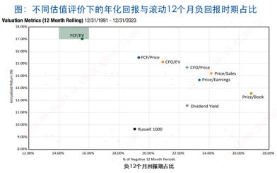 注:源自Pacer官网报告《Free Cash Flow Yield & Margin:Proven Measurements of Value and Growth》,基于罗素1000指数前100家公司计算,在每个估值指标中不含金融行业,其中FCF为公司经营活动产生的现金流减去资本支出,企业价值EV为公司调整后市值以消除资本机构偏差。