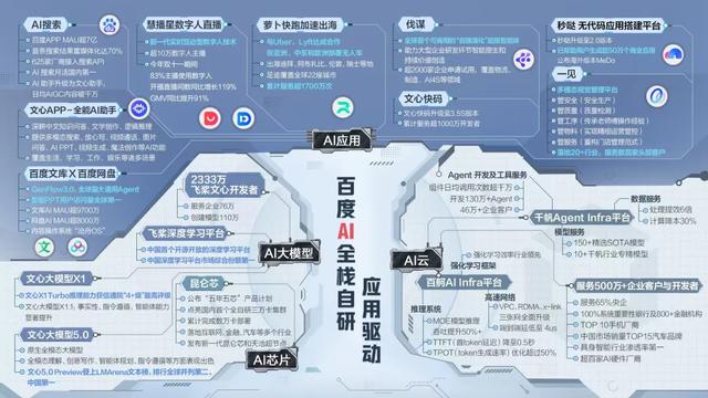 文心助手已经有2亿月活用户在每天真实地使用AI功能,这些调用不只是在回答“产品好不好用”,它同时在替全栈体系的每一层做实战验证。这是全栈布局和单点布局之间最本质的区别:一家只做模型的公司,模型训完了得找客户去用,反馈链条长、迭代周期慢;百度的模型训完了,第二天就能推给7亿搜索用户中的2亿AI活跃用户,真实场景里的反馈很快就能回流到模型迭代中。