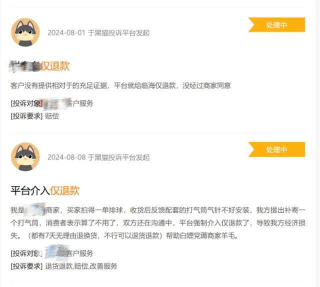 黑猫投诉数据显示,截止到8月15日与“仅退款”有关的投诉就达到164830条。