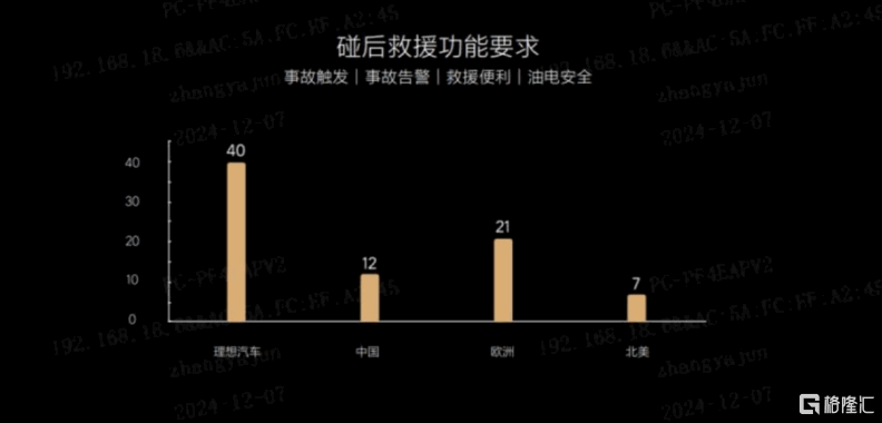 除了充分的事前预防和事中缓冲之外,理想还针对安全事故发生后的处理做了重组准备。据悉,理想汽车的碰后救援功能要求高达40项,比欧美以及国内目前通用标准超出了一倍。