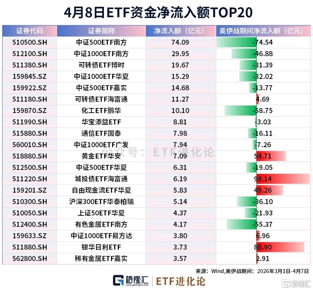 ETF资金当日配置也偏向机构审美,宽基指数ETF净流入105亿,行业主题ETF净流出38.69亿元。